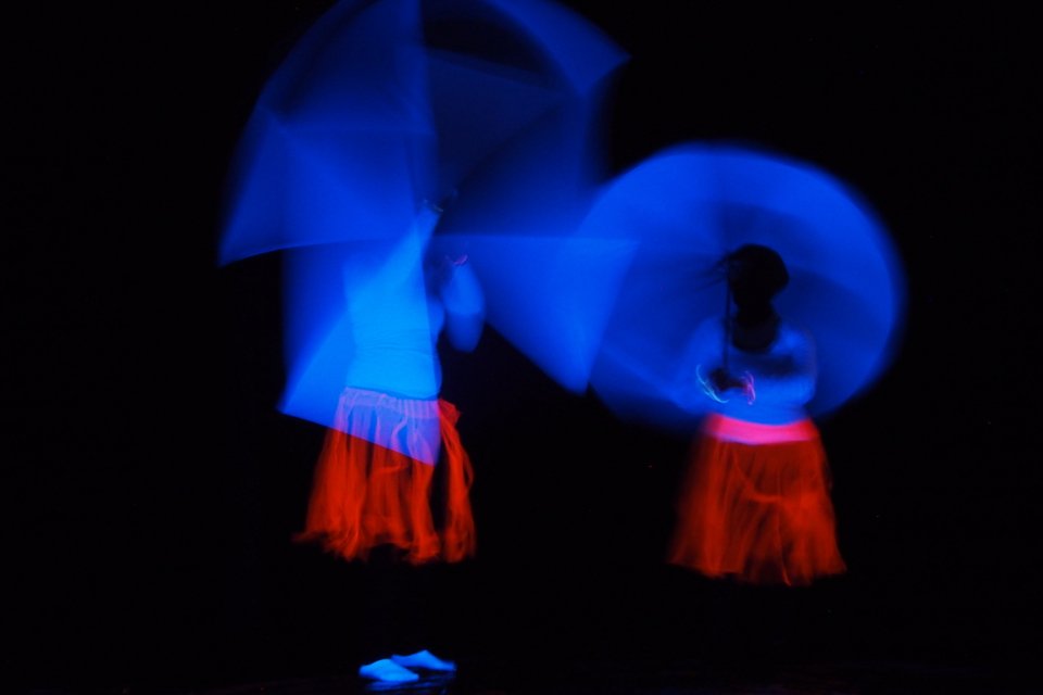 Josefin Gremm (Schülerin der Klasse 11 des Bildungsgangs AHR mit den Leistungskursen Erziehungswissenschaften und Biologie) trug für die Absolventen ihren eigenen Poetry Slam „Abschied und Aufbruch“ vor, das das Motto der Abschiedsfeiern gekonnt und anschaulich aufnahm. „Dialog im Dunkeln“ hieß das Schwarzlichttheater der Schüler/innen der Unterstufe der Fachschule für Sozialpädagogik unter der Leitung ihrer Lehrerinnen Angela Heying und Marietta Richter. Geheimnisvoll leuchtend huschten farbige Lichtgestalten über die dunkle Bühne und gestalteten verschiedene Szenen. Die Schülerinnen und Schüler der Klasse 11 des Bildungsganges AHR mit den Leistungskursen Sport und Biologie zeigten ihr hohes Können mit einer musikalisch begleiteten sportakrobatischen Show unter der Leitung ihres Sportlehrers Guido Austrup. Alle Beteiligten, Absolventen, Redner, Aufführende und Organisatoren im Hintergrund bekamen den begeisterten Beifall des Publikums des voll besetzen Saals. Beim anschließenden Sektumtrunk war schon die Vorfreude auf die Aufschlussfeiern am Abend zu spüren.