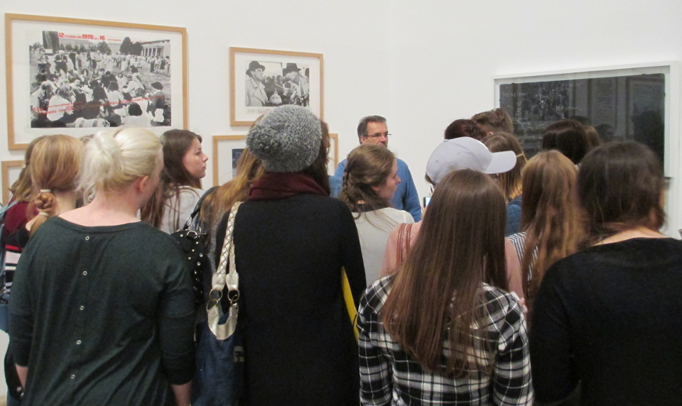 Natürlich darf eine Stadtführung mit einem echten Londoner wie Tim Goddard nicht fehlen. So verpasste die Klasse auch nicht die Salutschüsse zum 65. Thronjubiläum von Queen Elizabeth II.. Der Besuch von drei großen Museen stand auf dem Programm, die Tate Modern, die Tate Britain und die National Gallery. Besonders auf die Tate Modern waren alle gespannt, nicht nur, weil sie zu den weltgrößten und meistbesuchten Museen der modernen Kunst zählt, sondern auch weil der Erweiterungsbau gerade erst eröffnet wurde. Werke von 300 Künstlern aus 50 Ländern können nun gezeigt werden. Der wahrlich krönende Abschluss des Museumsbesuchs war die Fahrt hoch zur Aussichtsplattform der Tate Modern, von der man eine phantastische Aussicht auf die Skyline von London hat. Ohne Skizzen- und Notizblätter ging es dann zum Globe Theatre, ein selbstverständliches Pflichtprogramm für einen Leistungskurs Englisch. Wer hier einen langweiligen, akademischen Vortrag über William Shakespeare erwartet hatte, wurde bitterlich enttäuscht. Lebendig und mit viel Humor wurde den Schülern die elisabethanische Gesellschaft und ihr Theaterleben anschaulich gemacht. Shakespeare wurde dorthin gebracht, wo er sich am wohlsten fühlte, mitten unter das Volk. So konnte anschließend unverkrampft ausprobiert werden, wie Shakespeare am helllichten Tag durch Dialoge allein durch Sprache vor seinen Theaterbesuchern eine Nachtszene erscheinen ließ.