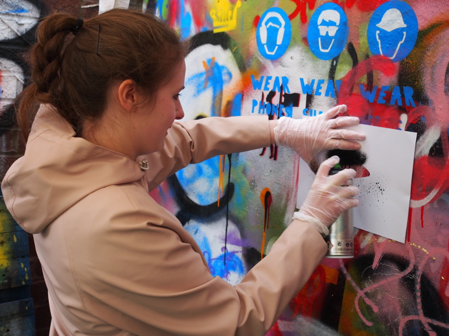 Josh, ein Street-Art-Künstler, führte die Klasse durch seinen Londoner Stadtteil East End und zeigte der Klasse zahlreiche Werke von seinen Kollegen aus aller Welt, die ihre Spuren an den Wänden von Wohn- und Lagerhäusern legal oder auch illegal hinterlassen haben. Zum Teil durch verborgene Gassen und durch Unterführungen, vorbei an einer Tatortabsperrung, hinter der die Polizei ein „Stadtteilding“, wie Josh sich ausdrückte, aufnahm, wanderten die Schüler von Kunstwerk zu Kunstwerk. Eine ganz eigene Welt der Kunst, die nun sogar den Weg in Galerien findet, öffnete sich außerhalb der Museen auf den Straßen von London. Natürlich erprobten die Schüler eines Leistungskurses Kunst das Sprayen auch unter der Anleitung von Josh in einem Workshop. Bald klackerten die Farbsprühdosen vom Schütteln und Josh nickte anerkennend über das ein und andere Ergebnis, das in der kurzen Zeit entstanden war. Zu einer Studienfahrt gehört auch ein touristischer Teil mit einem Nachtspaziergang durch die Carnaby Street, einer der bekanntesten Einkaufsstraßen Londons, durch China Town und das Vergnügungsviertel Soho. Auf dem Piccadilly Circus treffen sich heute noch Jugendliche aus der ganzen Welt. Wer Spaß und den Mut hat, kann dort auch heute sogar noch mit Jugendlichen aus aller Herren Länder tanzen. Nach ausgiebigen Shoppingtouren auf der Suche nach Schnäppchen in Traditionswarenhäusern und angesagten Exklusivläden und einem gemeinsamen Abendessen im Rainforest Cafe wartete am Ende der ereignis- und erlebnisreichen Woche der Bus auf die Rückfahrt nach Ahaus.