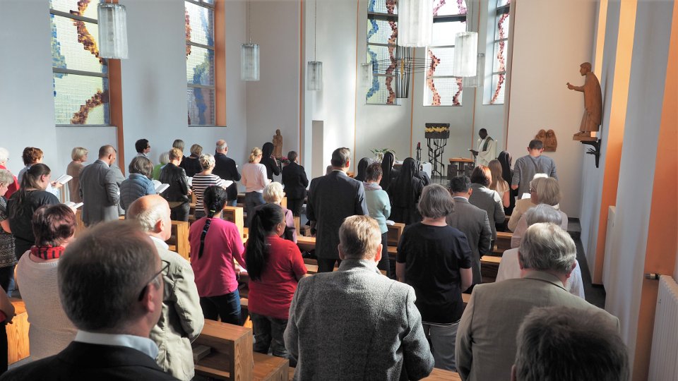 Neben den zahlreichen Gästen, darunter Mitschwestern aus Bestwig und Heiligenstadt, waren auch die Geschäftsführung, Schulleitung, Lehrer/innen, der Lehrerrat, die Mitarbeitervertretung, Mitarbeiter/innen, die Schülervertreter und Ehemalige unseres Berufskollegs gekommen, um den drei Schwestern alles Gute auf ihrem weiteren Weg zu wünschen.