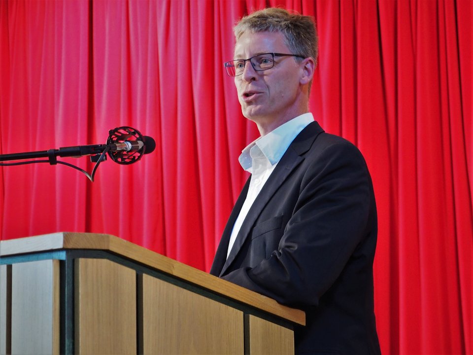 In ihrem Grußworten bedankten sich die Schulpflegschaftsvorsitzenden Anne Herker-Orthaus und Hartmut Hangen im Namen der Eltern bei der Schulleitung, den Lehrerinnen und Lehrern sowie den Mitarbeiter/innen, die die Absolventen bis zu ihren Abschlüssen begleitet haben. Als Eltern müsse man akzeptieren, dass Kinder ihren eigenen Weg gehen. Dabei könne man sie fördern, vielleicht mal auffangen, wichtig sei es aber, dass die Kinder selbstständig wieder aufstehen, auch wenn sie den Aufprall gespürt haben. Denn so ein Lebensweg sei nicht nur vielfältig und bunt, sondern manchmal auch steinig. Aber es gebe auf Seiten der Eltern und der Kinder keinen Grund zu Ängstlichkeit für einen solchen eigenen Weg. Neugier, gepaart mit Wissen und zunehmender Erfahrung sei da eine gute Mischung. Auf diesem Weg sollten sie auch keine Ja-Sager sein, wenn es offensichtlich in die falsche Richtung gehe oder man in eine falsche Richtung gedrängt werde. Für ein Nein müsse man dann die nötige Stärke haben.