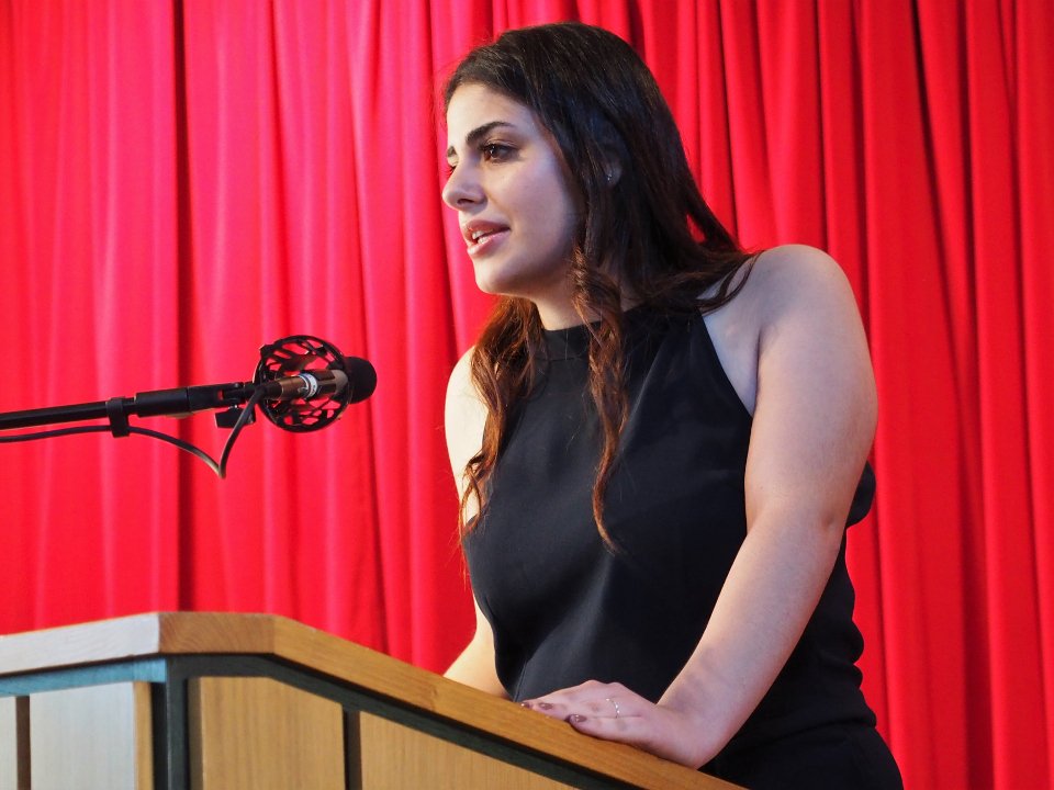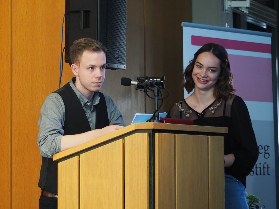 Die Schülersprecher Carla Pieper, Eric Tenhumberg, beide FSPU, und Melek Sürmeli, AHE 13 A, beglückwünschten alle Absolventen im Namen der Schülerschaft, dankten gleichzeitig Schulleitung, Lehrer/innen und allen Mitarbeitern des Berufskollegs für die vergangenen Schuljahre. Sie verglichen das Leben mit einer langen Zugfahrt, auf der man nach einer längeren Stecke ab und zu umsteigen müsse. So sei es auch jetzt mit der Schulzeit. Es gelte dem „Zugpersonal“ und den „Zugführern“ zu danken, sich von liebgewordenen Mitfahrern zu verabschieden, mit einigen fahre man sicherlich auch weiter, und man müsse schauen, dass man nicht das Ziel aus den Augen verliere. Aber auf das Umsteigen und auf den weiteren, sicherlich spannenden Weg sei man vom „Zugpersonal“ und der „Zugleitung“ gut vorbereitet worden.