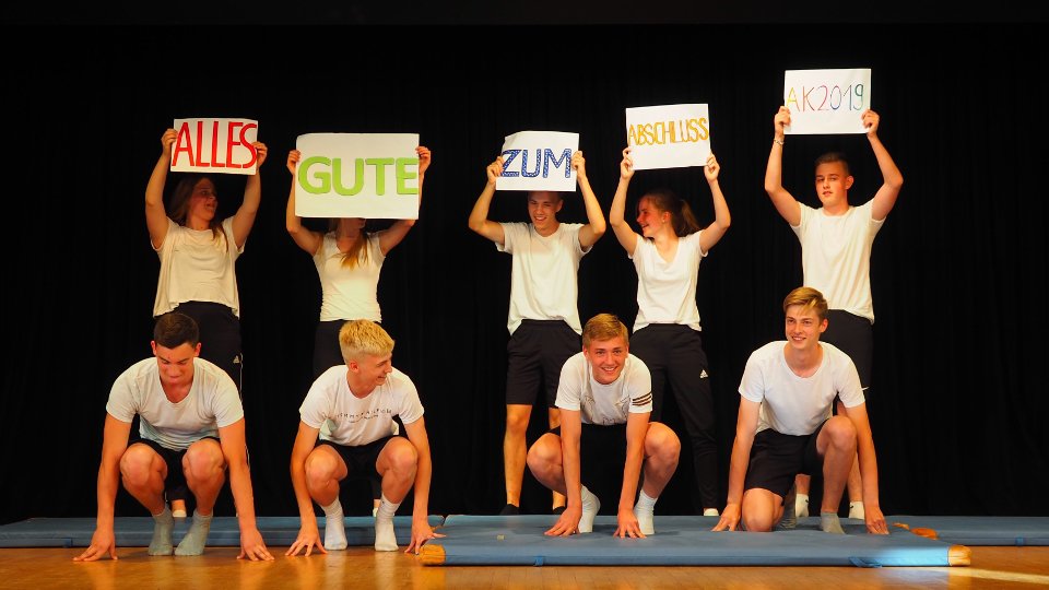 Mit ihrem Tanz- und Akrobatikprogramm „ABIroad“ mit mutigen Sprungeinlagen , sogar mit einem Salto unter der recht niedrigen Bühnendecke, zeigte die AHS 11, was sie unter der Leitung ihres Sportlehrers Mathias Krüskemper einstudiert hatten.